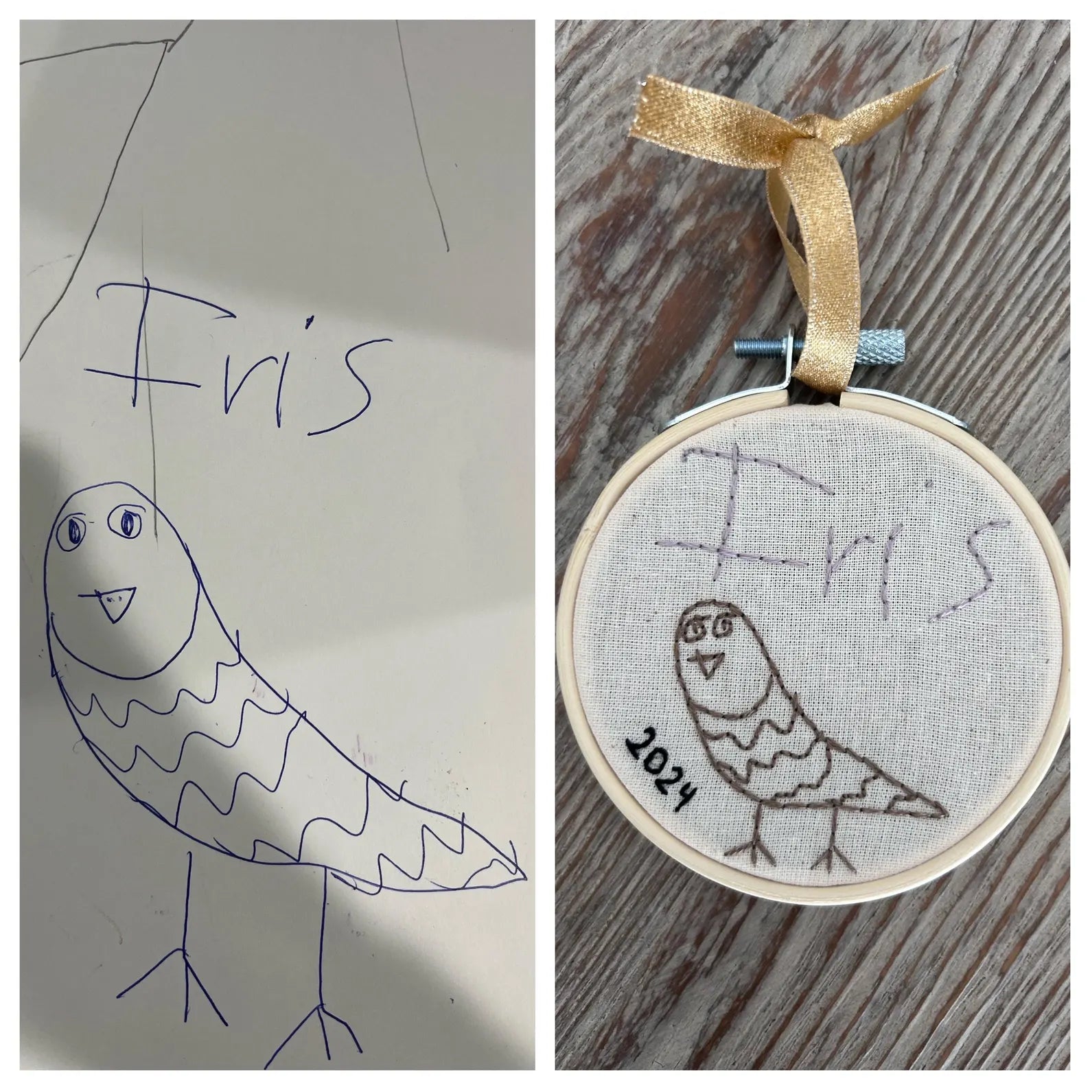 Child’s Drawing Embroidered Ornament