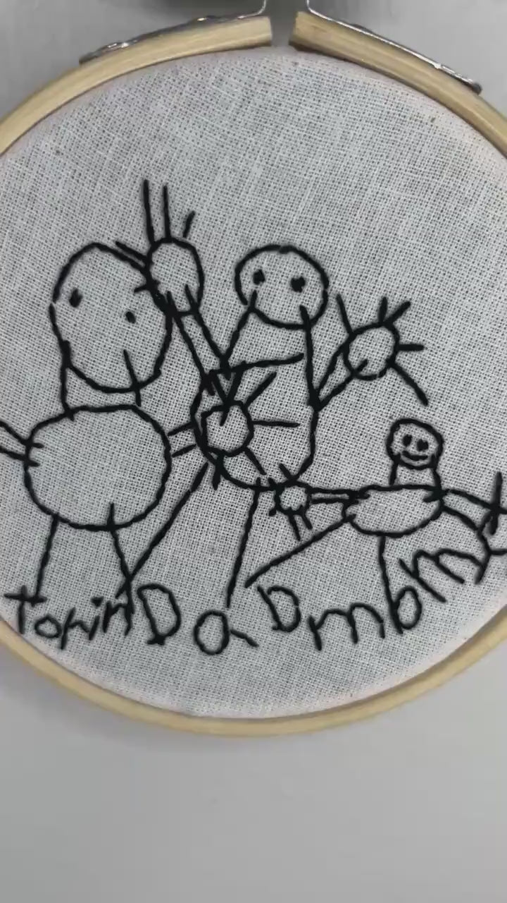 Capture your child’s drawing in a forever keepsake. Use this custom embroidery piece as a decorative personal keepsake, an ornament, or as a gift for a grandparent or friend.